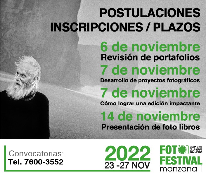 Del miércoles 23 al domingo 27 de noviembre Manzana 1 Espacio de Arte realizará el Foto Festival Internacional Santa Cruz de la Sierra – Bolivia 2022, acontecimiento que reunirá a los fotógrafos ganadores de premios World Press Photo.